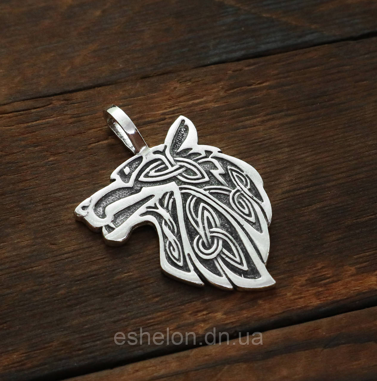 Підвіска срібна Вовк Оберег&^^^ Образ вовка у міфології уособлює посередника між світами мертвих, живих та тварин. Він є покровителем воїнів. Тому талісман, виготовлений з вовчого ікла, вважається амулетом з чоловічою енергетикою. У деяких джерелах зазначено, що слов'янські народи, якщо зустрічалися в лісі віч-на-віч з вовком, вимовляли вголос імена своїх родичів, яких уже немає в живих. Після цього вовк відступав і не завдавав шкоди людині, яка захистила себе іменами мертвих. Асоціюються з вовками також сонячне і місячне затемнення, повний місяць. Талісман вовка має великий попит серед чаклунів і шаманів у всьому світі. Безліч ритуалів виконується із застосування талісмана з вовчого кігтя або ікла. Маги заявляють, що вовчий амулет хороший захисний засіб від бісів. Розмір без вушка - 3,3 см. х 2,5 см.